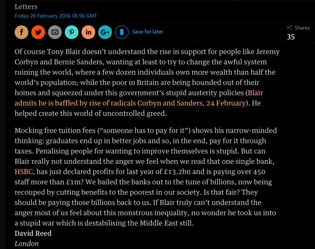 I posted this somewhere else some time back and today I found it again and it seems relevant so I’m reposting it again despite the fact that it’s May in the firing line now and not Blair. But the reasons still apply.