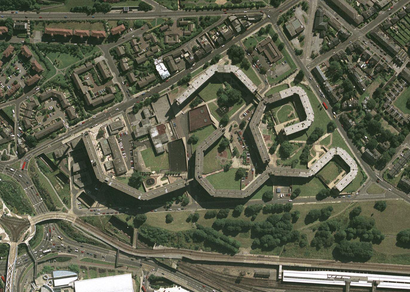 Yet as architects Hawkins Brown oversee the appliciation of a new cladding to one of the most significant housing projects in Europe, one is reminded of one aspect of the building that Banham, it’s earliest and most important friend, was confused by: the facade. He wrote in his seminal book: ‘for a certain period of the design process the architects were advised by John Foresters, an abstract sculptor, but neither his nor the influence of fashion seems to have had much effect. It simply looks as though the architects had more important things on their minds than facadepatterns.’ The significance of the facade, the outward-looking aspect of this huge habitat of 1,000 apartments over 13.3ha, escaped him.
